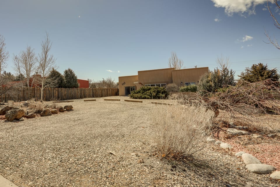 Gather your friends and family for a tranquil retreat at this lovely 3-bedroom, 2.5-bath Taos vacation rental! Boasting a fully equipped kitchen, a furnished patio, a fire pit area, and a sauna, this home offers the perfect setting for rest and relaxation. When you’re not enjoying these perks, shop ‘til you drop at the Taos Plaza or hit the slopes at Taos Ski Valley. After a day of adventure, soak your cares away in the private hot tub or head inside for a cozy movie night by the Smart TV.