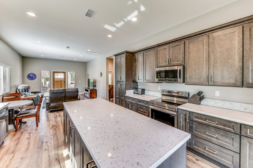 KITCHEN: Refrigerator, stove/oven, dishwasher, dishware/flatware, cooking basics, spices, Keurig coffee maker (K-cups provided), blender, Crockpot, microwave, toaster oven, water filter, ice maker