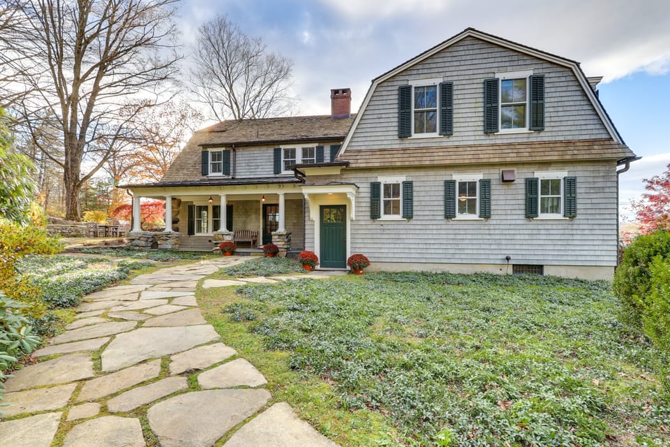 Your ultimate family getaway awaits at 'The Boulders!' Situated on Lake Waramaug, this impressive 9-bedroom, 6.5-bathroom Warren vacation rental home features 7,000 square feet of living space. Have a cookout on the grill, dine with loved ones on the expansive patio, and take in tranquil views of the lake from the fire pit. Later, cast a line off the boat dock or play a match of ping pong! Going out? Take a short drive to the beach and hike through Mount Bushnell State Park.