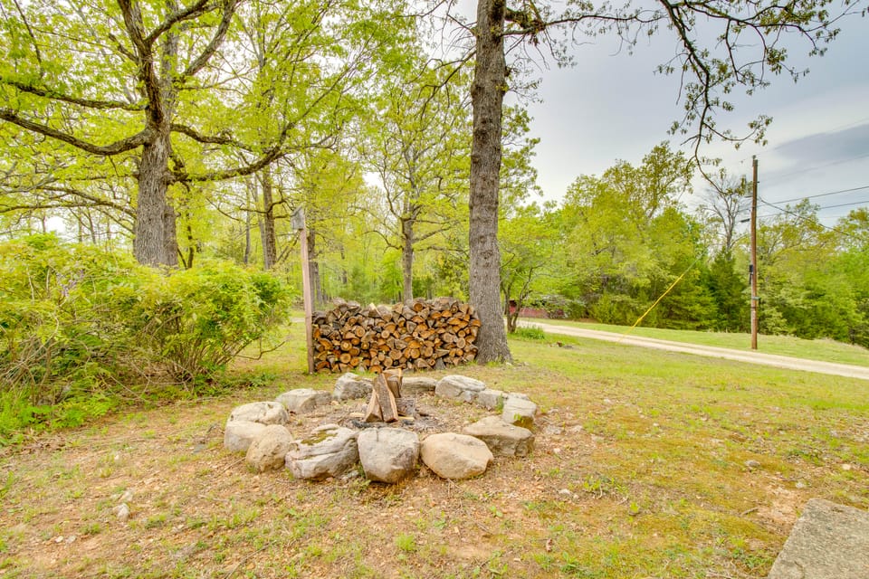 Nestled in the serene surroundings of Elizabeth, AR, this vacation rental offers easy access to outdoor recreation on Norfork Lake. Couples and small groups can enjoy a stress-free stay at this 1-bath studio, with essential amenities like free WiFi, a well-equipped kitchen, and a Smart TV. Spend your days boating and fishing, then return home to fire up the charcoal grill for a BBQ dinner, bask in the partial lake view on the deck, and gather for s'mores and stargazing by the fire pit.
