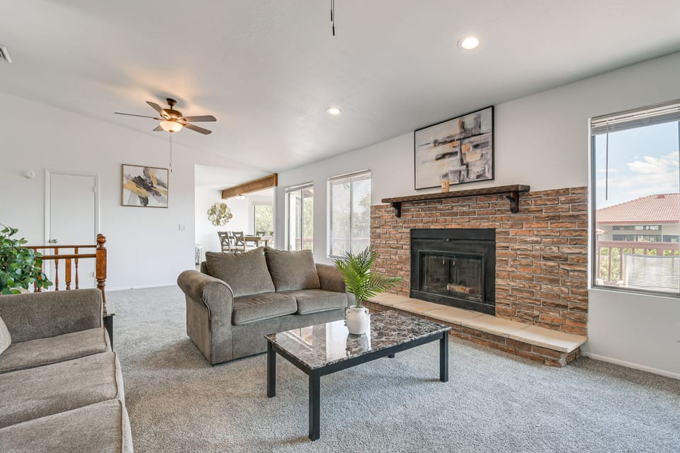 Soak up the sweet desert sunshine at this charming 3-bedroom, 2.5-bath vacation rental in Fountain Hills, AZ! Perfect for families, friends, and pet owners, this home boasts a full kitchen, 2 decks with outdoor seating, and stunning views of the surrounding mountains. When you’re not enjoying these perks, explore the trails in McDowell Mountain Regional Park or check out the OdySea Aquarium in Scottsdale. After active days, relax by the fireplace and stream your favorite shows on the Smart TV.
