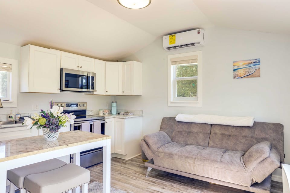 Escape the hustle and bustle by booking a stay at this charming 1-bedroom, 1-bathroom vacation rental in Ocala. With a prime location near the World Equestrian Center and the historic Ocala Downtown Square, this updated tiny home offers the perfect place to rest after all of your adventures. After a day out, return to this abode and stroll through the 5-acre property or head inside to whip up a meal in the fully equipped kitchen before enjoying a movie night on the Smart TV.