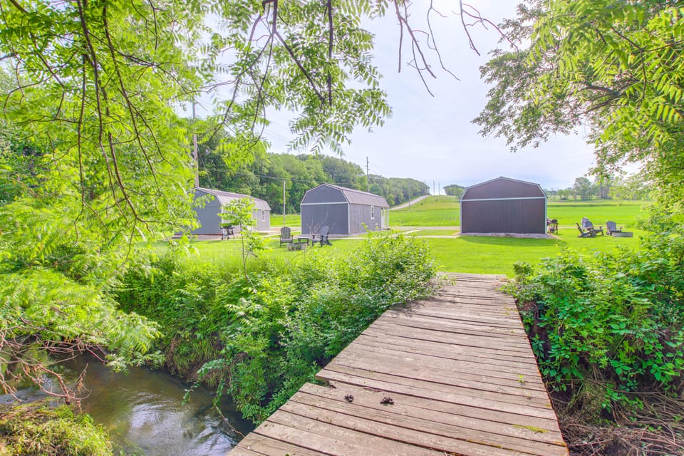 Imagine waking up to the chirping birds and the soothing creek sounds at this charming 1-bedroom, 1-bath cabin in Montezuma, IA! Whether you're seeking relaxation, thrilling adventure, or quality time with loved ones, this vacation rental has something for everyone. Coast around Lake Ponderosa, see wildlife at Fox Forest County Recreation Area, or explore Diamond Lake Park. At day’s end, gather around the shared fire pit for s’mores or enjoy a cozy movie night by the Smart TV.