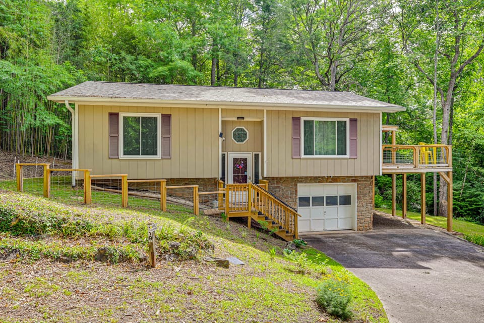 Make this Franklin, NC, vacation rental your base camp on your next trip to the Smokies! Each day begins and ends on the mountain-view deck, where you can listen to birdsong, see the distant peaks year-round, and enjoy your coffee or nightcap surrounded by a thick canopy of leaves. Spend the moments between downtown for local brews, eats, and museums, or hike through the Little Tennessee River Greenway. When all's said and done, return to 2 bedrooms, 1.5 baths, and a dedicated workspace.