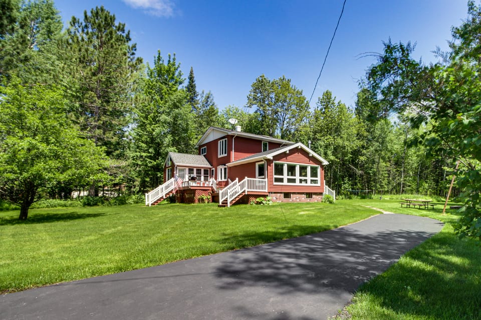 Take an outdoorsy retreat at this 4-bedroom, 3-bath Duluth vacation rental, nestled just off the shore of Pike Lake! Enjoy the sights and sounds of nature as sunshine pours in from the wall-to-wall picture windows adorning the living room. A spacious deck and an outdoor dining area offer spots for sunset meals, while the fire pit is perfect for chilly evenings cuddled up with loved ones. Meanwhile, you can find boating, the beach, and lakeside golfing all a short walk away!