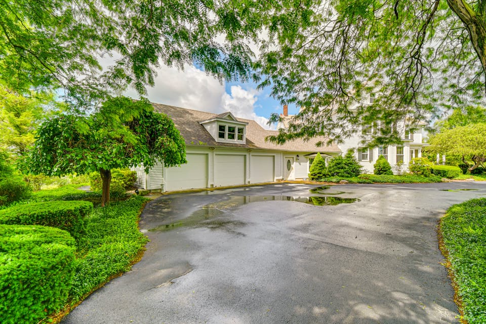 Immerse yourself in the scenic beauty of Finger Lakes Wine Country when you stay at 'Broad Meadow Mansion,' a 5-bed, 5.5-bath vacation rental in Geneva. Built over 100 years ago and perched atop the sprawling estate of Ventosa Vineyards, this home features a luxurious traditional interior and ample outdoor lounge space. Take in vibrant sunset views, enjoy a short walk down to Seneca Lake, enjoy catering from Café Toscana, and sample local libations — all without ever leaving the property!