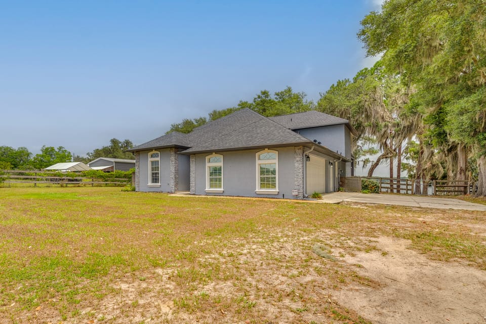 Enjoy the lake life and soak up the sun at this Summerfield vacation rental! Situated on Little Lake Weir in Florida Horse Country, this 4-bedroom, 3-bath home is ideal for accessing outdoor fun with ease. Launch jet skis right from the property, take the kayaks out for a ride, or head over to Carney Island Recreation Area for a hike. If you’re an equestrian, staples like the Florida Horse Park are just a drive away, while nearby entertainment can be found at Spanish Springs Town Square!