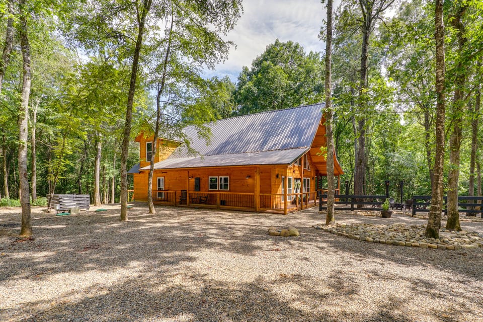 Discover a dreamy getaway in the Ouachita Mountains at this spacious 4-bedroom, 3-bathroom Broken Bow vacation rental! You'll find entertainment for the whole family throughout the cabin, whether you cast a line in the fishing pond, start the grill for a backyard barbecue, or cozy up for s'mores by the fire pit while the whispering pine forest surrounds you. When it's time to explore the great outdoors, head to Broken Bow Lake and embark on a boating adventure!