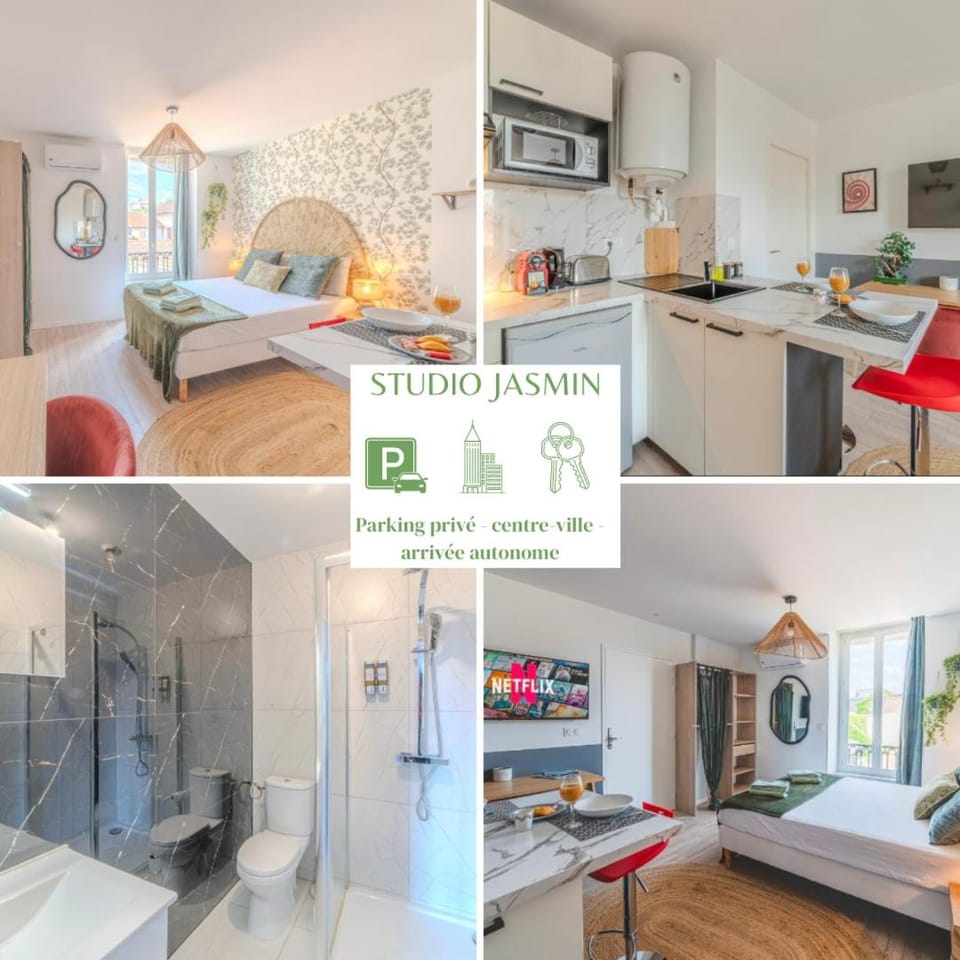 What amenities are available at Jasmin Roanne centre-ville - Parking & Clim?
