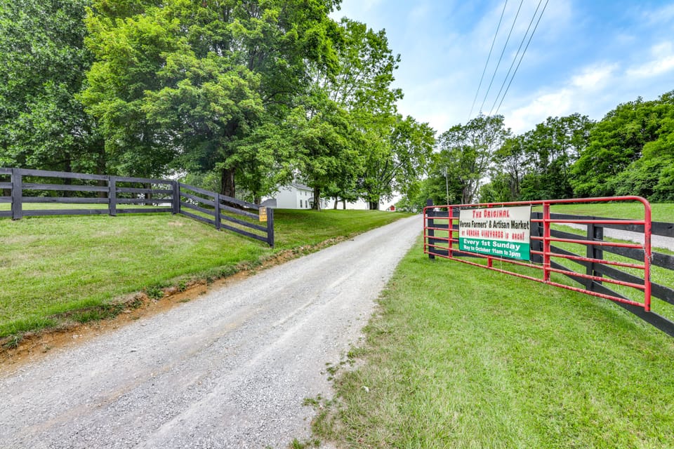 Your next Kentucky getaway awaits at this charming vineyard vacation rental. With a private hot tub, farmhouse charm, and beautiful farmland surroundings, this 3-bedroom, 2-bath home provides a perfect environment for a relaxing stay with family or friends. Take serene hikes through the Big Bone Lick State Historic Site, or plan a day trip to tour incredible Cincinnati sights like the Newport Aquarium! At day's end, enjoy al fresco dining and beautiful sunsets on the patio.