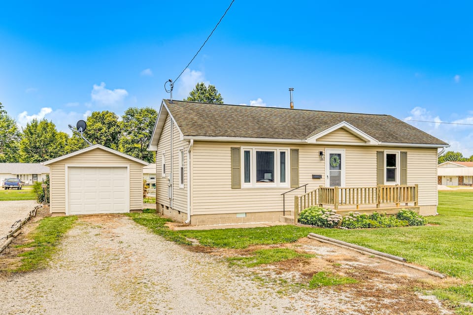 Make the most of your next Midwest adventure at this 2-bedroom, 1-bath vacation rental in Robinson, IL! Boasting a spacious backyard, a porch, and a welcoming atmosphere, this delightful home ensures relaxation and recreation. For fun-filled days, enjoy a stroll at the Robinson City Park or book a tee time at the Quail Creek Country Club & Resort. After exploring, unwind by preparing a tasty meal in the fully equipped kitchen and gathering the gang for a movie night!