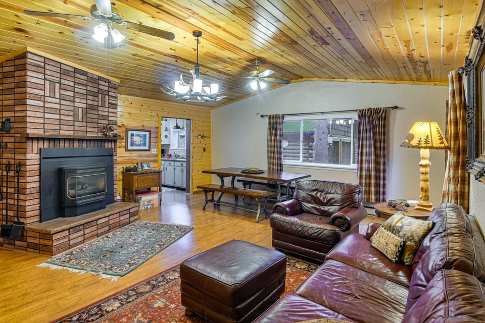 Whether you plan to fish on Henry's Fork, hit the trails, or unwind in the great outdoors, you'll love this 4-bedroom, 2-bath vacation rental as your base in Island Park! Complete with a well-equipped kitchen and a cozy living room with a gas fireplace, this cabin has all the essentials for your next outdoor retreat. Embark on a nature-filled excursion at Yellowstone National Park or cast a line in the river nearby. After, light up the wood-burning fire pit and enjoy the beautiful scenery.