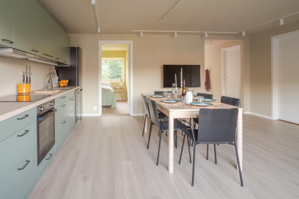 The toilet and bathroom is in one.So not so convenient as we have 7person.The view from living room is very nice.But it was rainiy and snowy during our stay.So too bad.The hot water at the kitchen was boiling hot and i was scalded! i think it should not be that hot for safety reason.The owner never provide floor mat or table cloth.If u really want the guests to keep yr place clean,you should provide it.