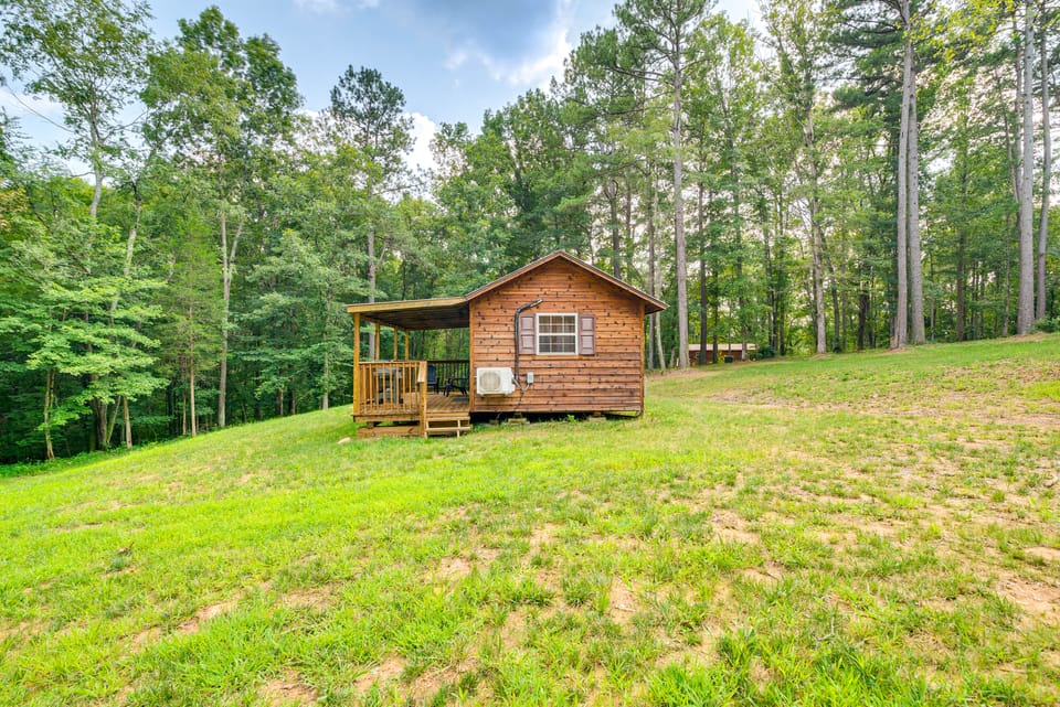 Get away from the hustle and bustle and enjoy the natural surroundings of this Clarkson, KY, vacation rental. Tucked away in the forest near the shores of Nolin Lake, this 1-bedroom, 1-bathroom cabin is ideal for disconnecting and getting outside. There’s room for your boat and your furry friend, too! Whether you’re heading out on the water to fish, making a day trip to Mammoth Cave National Park, or simply basking in the calm on the covered deck, you’re sure to find your bliss at this hideaway.
