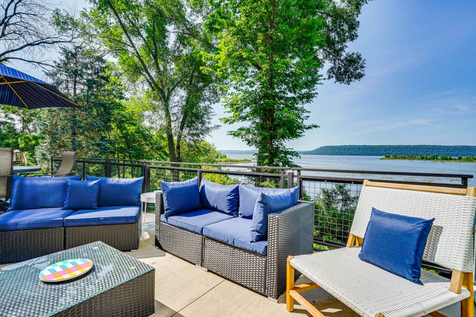 We had a wonderful stay at this beautiful home in Maiden Rock. The home was very well-appointed, check-out was a breeze, and the location was great! We really enjoyed the beautiful views of Lake Pepin and the deck overlooking the water. We were able to walk to the local coffee shop each day--highly recommend Maiden Rock Mercantile for delicious coffee!