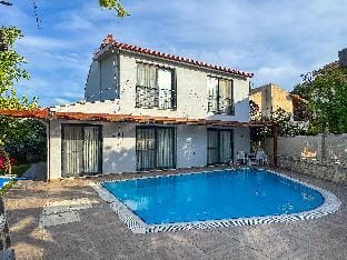 Yes, a swimming pool is available for use at Villa Talia. Enjoy the water!