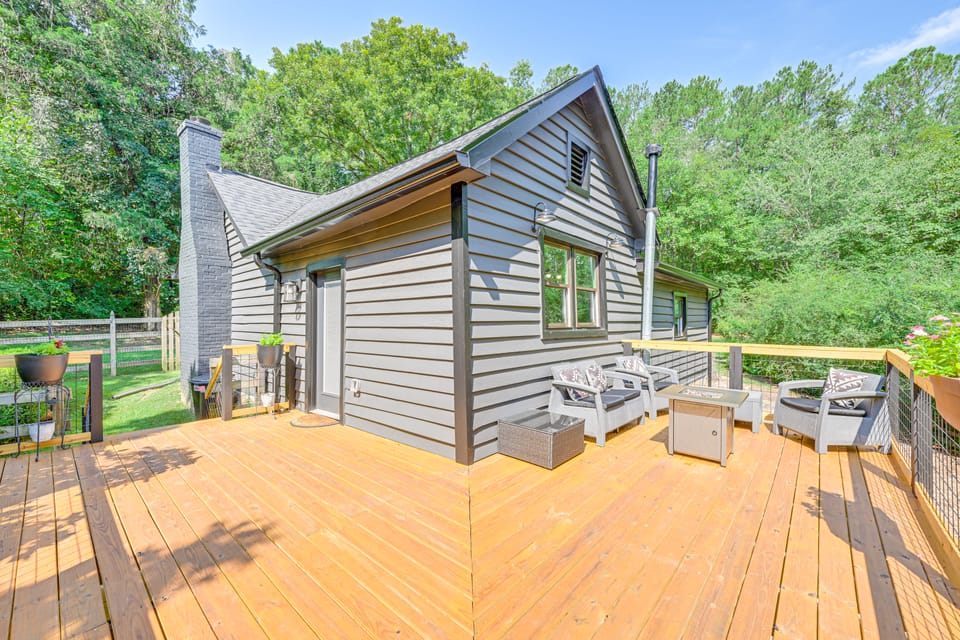 Get the most out of your next West Georgia retreat at this charming Carrollton vacation rental! With the serene wooded setting and a great location, just minutes from all the shops and restaurants found downtown, this 2-bedroom, 2-bath cabin is perfect for a relaxing getaway surrounded by nature. Explore the Greenbelt Trail at Carroll Lake, check out John Tanner Park, or visit one of the region’s top-rated wineries. Then, return home to cap off the day unwinding around the fire pit.