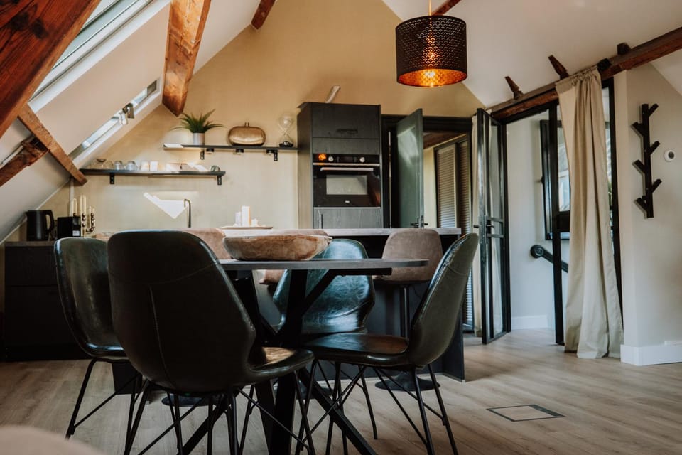 The decor is amazing - beds comfortable - kitchen well stocked with dishes and utensils - that said - the bathroom is tiny - you have to go sideways past the shower to get to the toilet. The bathroom is within the bedroom - so if you are staying in the living room - you have to go into the room of the person/people staying in the bedroom to access the bathroom - awkward. The stairs up to 'the loft' are typical Dutch - not for the fainthearted.