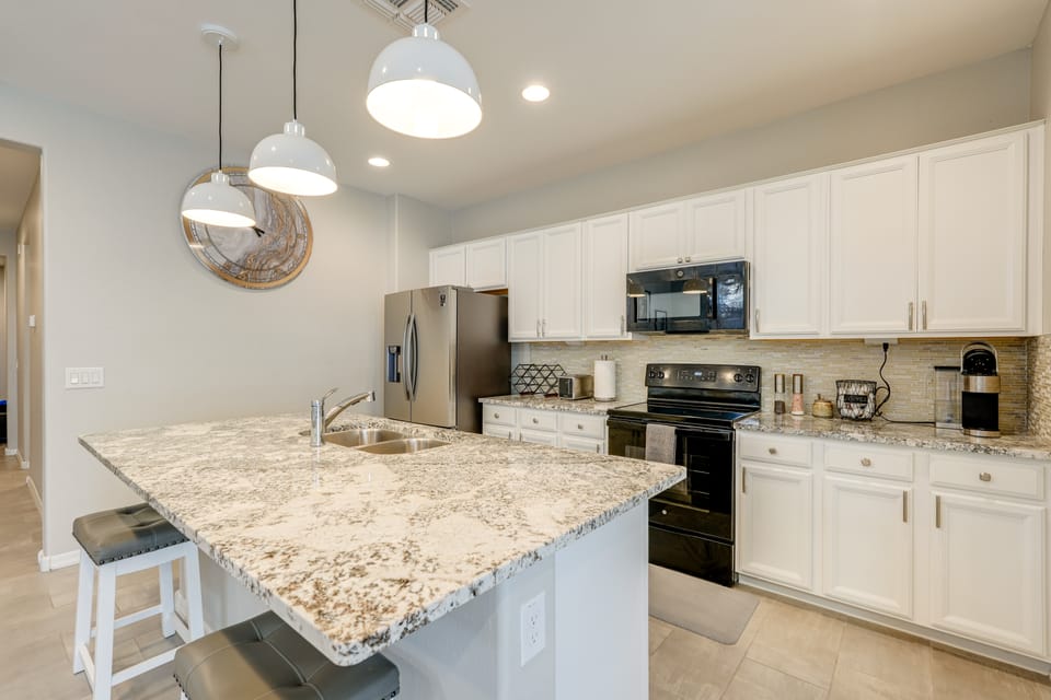 Whether you’re in town to visit family, work, or explore the desert, this Casa Grande vacation rental is the perfect home base. The 4-bedroom, 3-bath home has all the essentials, including a full kitchen, in-home laundry, Smart TVs, and private outdoor space. Ready for adventure? Skydive Arizona is 18 miles away, and the Casa Grande Ruins are 20 miles away.