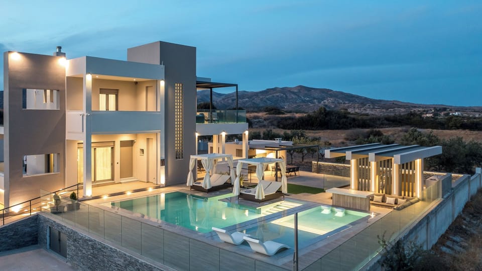 Grand Aqua Luxury Villa by Mintzi is a beautiful retreat in Gennadi, Rhodes, designed to accommodate up to 8 guests comfortably. The villa features 3 air-conditioned bedrooms: two with double beds and one with two single beds, perfect for families or groups of friends. The room with two single beds boasts a private balcony that includes a heated jacuzzi, providing a perfect spot to unwind while enjoying the views. There are 3 modern bathrooms, each equipped with a shower, ensuring convenience and privacy for all guests. The villas spacious living room is perfect for relaxation, offering two single sofa beds and a TV for entertainment. The fully equipped kitchen provides everything you need to prepare meals, from breakfast to dinner, making it ideal for those who enjoy cooking. There are dumbbells and a yoga mat available at the property.Outdoors, Grand Aqua Luxury Villa by Mintzi offers a fantastic setting for enjoying the beautiful Rhodes weather. The dining area with a BBQ is perfect for outdoor meals, while the sitting area invites you to relax and take in the surroundings. The private swimming pool is a highlight, offering a refreshing escape on warm days. For added convenience, the villa includes a private parking space, ensuring easy access and security for your vehicle. Grand Aqua Luxury Villa by Mintzi is the perfect choice for those seeking a relaxing and luxurious stay in a beautiful seaside location.