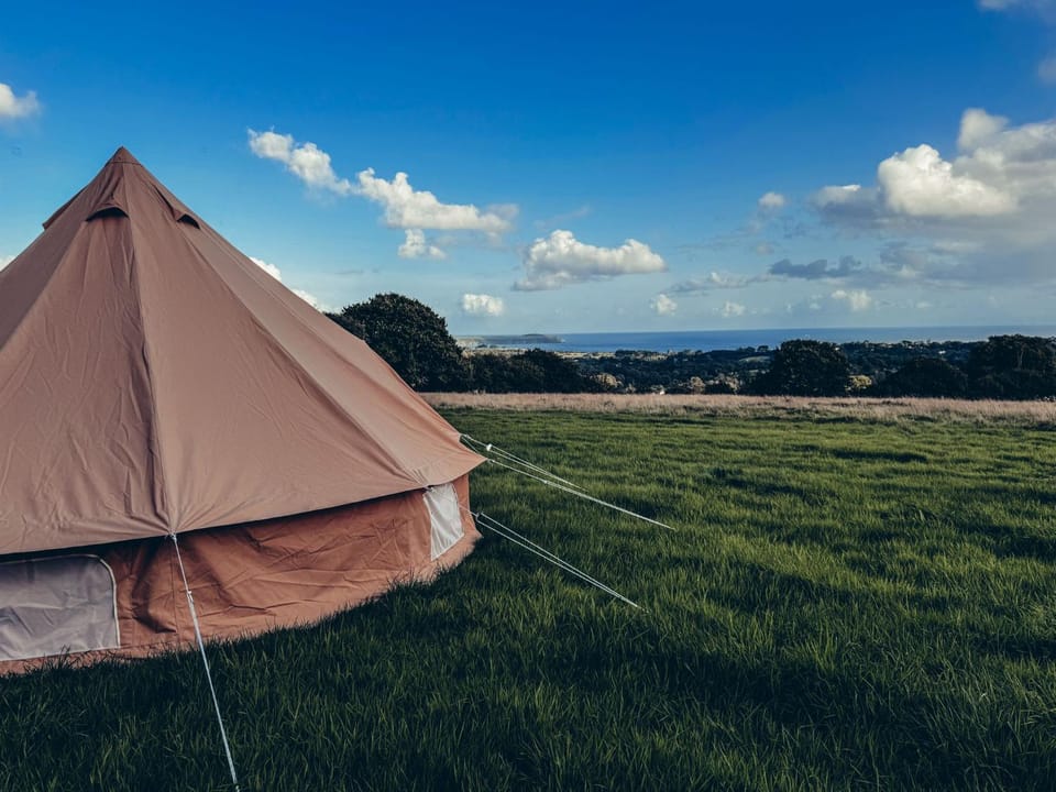 Lovely scenery, Aliki and her family are very nice and helpful, the bell tent is spacious, the bed is comfortable, clean toilet facilities with hot water. You just need to bring your crockery, kettle, towels etc. there was a log burner in the tent, and I messaged before to ensure this, you will need to bring your kindling and logs. My son had a nice time playing with other family’s children. It is a small camping site with 4 bell tents and feels cosy. The view is stunning, we walked through private lanes, safe roads and wood lanes. 30 minutes to the Eden project, 30mn to carlyon bay, 15mn to Cornwall football golf.