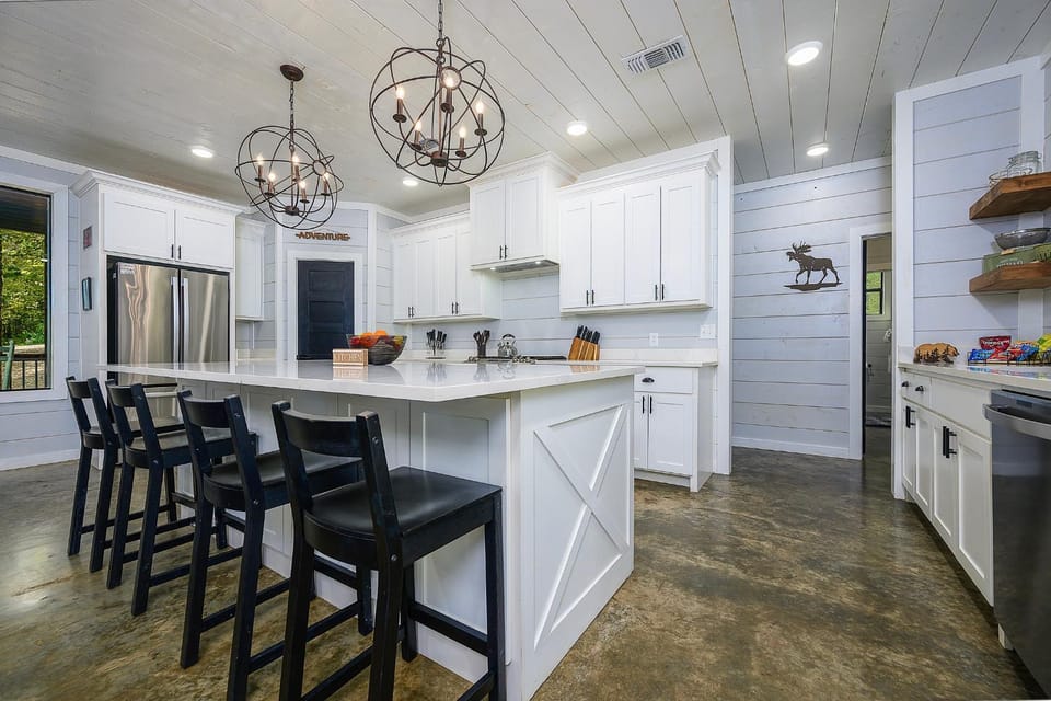 "Amazing location, secluded and private cabin. Very spacious, great amenities like hot tub, ping pong, firepit. Great decor and kitchen was fully stocked."
