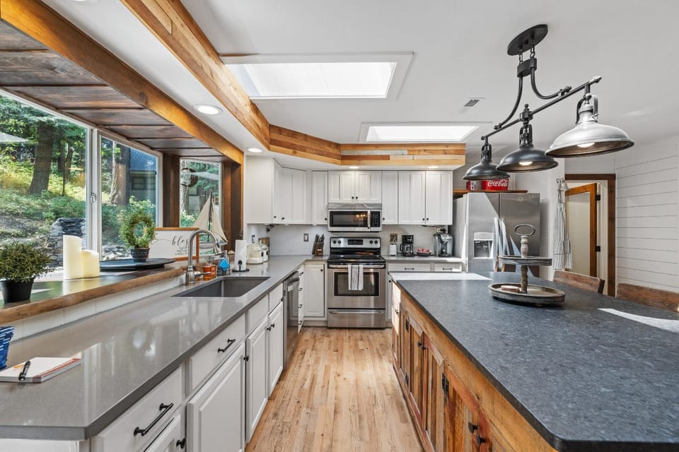 Indulge in a peaceful retreat at Hygge Mountain Retreat - Hot tub - Patio - Fire pit - Wifi - 2 Kitchens - Family Retreat, our elegant House in McCall. Enjoy amenities including Balcony/Terrace, Dryer and Fireplace, and more.