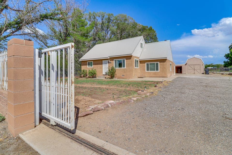 Embrace the vibrant city of Albuquerque from the comfort of this colorful vacation rental in the South Valley! Perfect for families with kids, this dog-friendly home offers 3 bedrooms, 2 bathrooms, a well-equipped kitchen, and a fenced backyard with a playset. Enjoy nearby access to the Rio Grande, immerse yourself in history at Petroglyph National Monument, or plan a day trip to explore downtown museums and the ABQ BioPark! Later, you can grill up a BBQ feast and unwind by the gas fire pit.