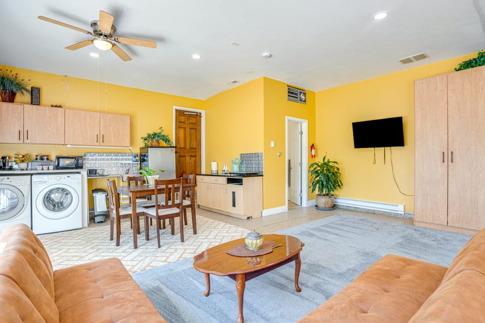 Outdoor Entertainment Area | In-Unit Laundry | 14 Mi to Airport