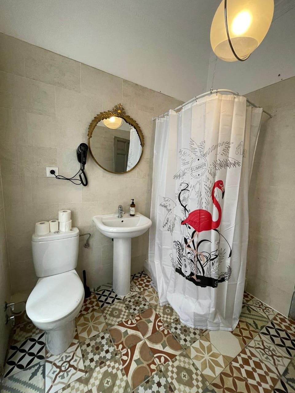 We found 5 amenities for this rental. This includes free parking, non-smoking, fire alarm, fire extinguisher, and cleaning products.