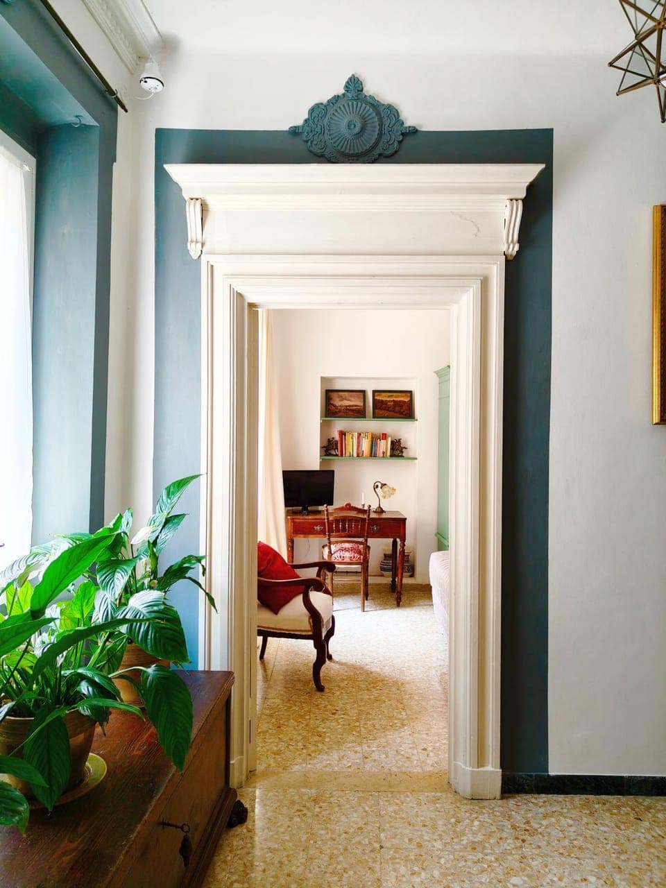 Von innen ist's fast schon wie in einem Schloss! Die großzügigen Räume sind mit antiken Möbeln, vielen Bildern, Büchern