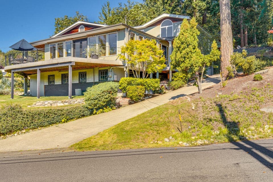 Immerse yourself in the beauty of the Pacific Northwest at this 3-bedroom, 2.5-bath vacation rental in Gig Harbor! This home invites you to embrace the charm of coastal living, whether you make memories by the fire pit on warm summer evenings, watch the Lighted Boat Parade from the deck in the wintertime, or unwind in the sun-dappled living room. Your escape to the Evergreen State awaits!