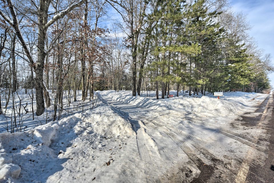 Calling all winter adventurers to this 3-bedroom, 2-bath vacation rental cabin in Danbury! Ideal for snowmobiling, cross-country skiing, snowshoeing, ice fishing, and cozy winter hikes, this Wisconsin getaway is sure to delight. After days exploring the snowy trails, play a round or two of pool or simply enjoy the serene view of the frozen lake and the deer on the property. The Northwoods is a click away!