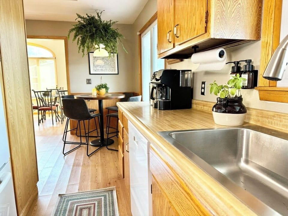 This comfortably furnished two-bedroom home has been recently updated for a cozy and enjoyable stay. The open floor plan includes a well-equipped kitchen with essential appliances including a stove, oven, refrigerator, dishwasher, and microwave. You’ll find a dining area and a living room with a 63” Smart TV that offers streaming services like Netflix, Firestick, and Amazon Prime.