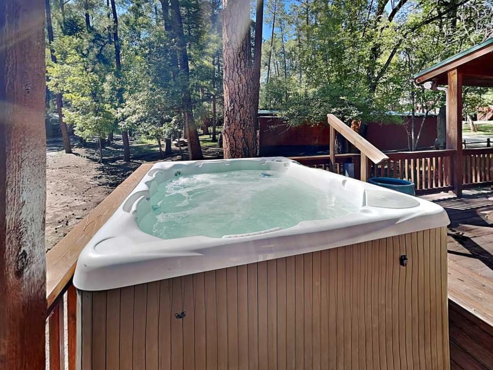 Experience vacation in Ruidoso with our Cabin, Hot Tub, Deck & Fireplace at Rustic Alto Cabin!. Enjoy amenities such as Air conditioning, Dryer and Fireplace, and more.