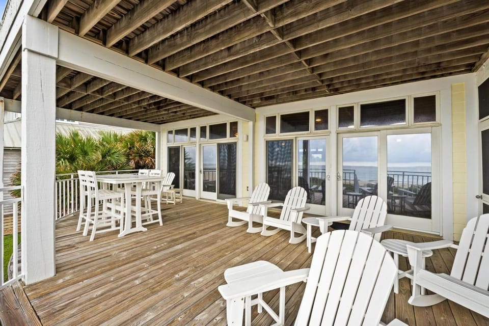 Nestled in Saint George Island, this House is perfect for your next vacation. Enjoy 9 BR 7.5 BA Gulf Coast Beachfront Paradise with Private Pool and Dock-Sleeps 20+'s top-rated amenities, including Air conditioning, Balcony/Terrace and Dryer, and more.