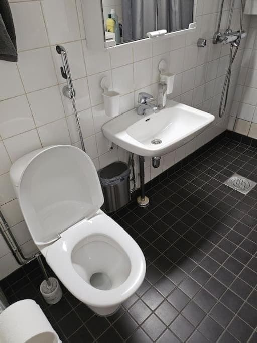Harmillisesti asunnon sisäilma oli huono. Pakkasilla korvausilmaventtiilit olivat kiinni saapuessamme ja asunto oli äärimmäisen tunkkainen. Koko huoneistossa oli vahva maakellarin haju, mutta onneksi olohuoneen ikkunan korvausilmaventtiilin avaaminen ja liesituulettimen laittaminen päälle raikastivat olohuoneen/makuuhuoneen ilmaa jonkin verran,mutta keittiöön ja eteiseen jäi vahva maakellarin haju. Keittiön korvausilmaventtiili oli teipattu osittain kiinni. Ikävä haju jäi vaatteisiin, eikä villavaatteisiin pinttynyt vanhan talon haju ole lähtenyt pesusta ja tuuletuksesta huolimatta eli sinänsä kovin ikävää. Korostan vielä, että minulla on kokemusta vanhassa talossa asumisesta, eikä tässä huoneistossa ollut kyse normaalista aromista, vaan poikkeavasta maakellarin hajusta, mikä todennäköisesti korostuu kovilla pakkasilla, kun ilmanvaihtoa rajoitetaan.