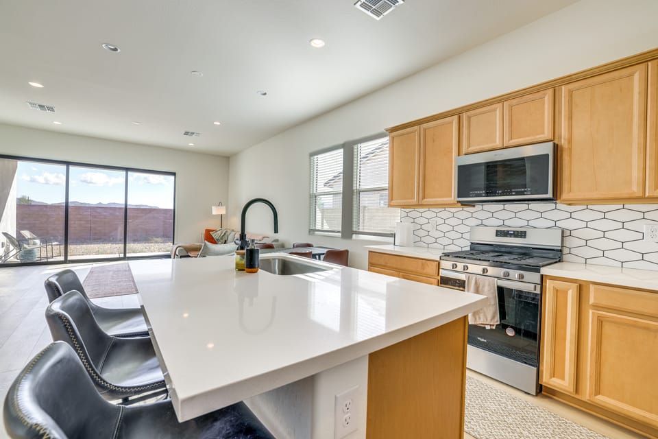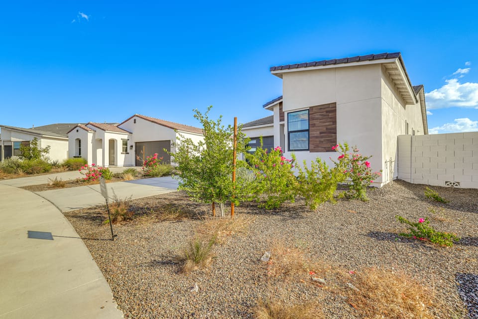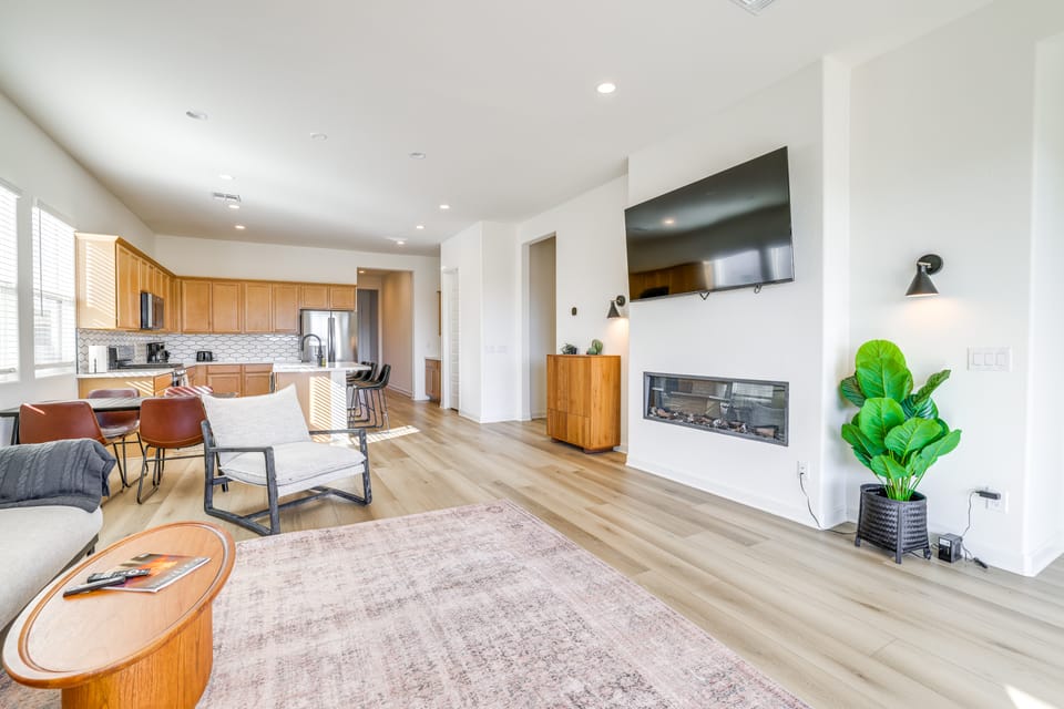 Your Arizona adventure awaits at this 3-bedroom, 2-bath vacation rental in Goodyear. Sip your morning coffee with a stunning mountain view from the private patio, then spend your days soaking up the sun at the Golf Club of Estrella or exploring scenic hiking trails in the surrounding desert landscape! Whatever your speed, you can unwind afterward at this cozy home with an evening of streaming your favorite shows by the fire.