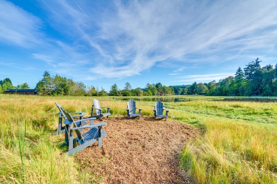 Serene nature retreat meets luxurious family chalet at this 5-bed, 3-bath vacation rental. Nestled on 8.5 acres of sprawling marshlands, this Pacific Northwest escape invites you to soak in the stunning beauty of Port Ludlow. Unwind on the deck and take in peekaboo views of the Puget Sound, cozy up by one of the fire pits, or enjoy clamming and oyster picking — all from the comfort of your backyard!