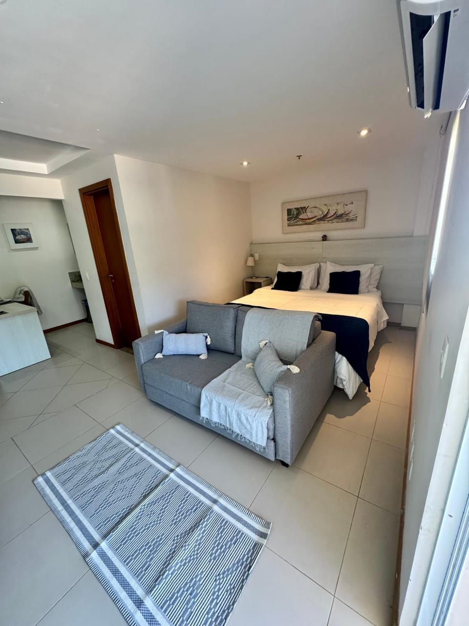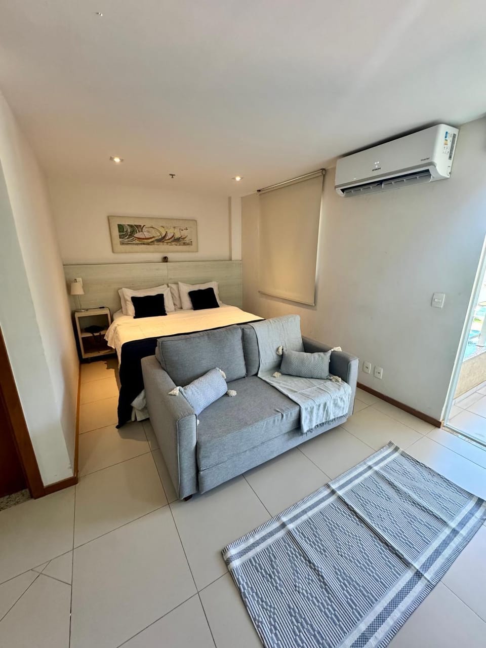 Quarto bem equipado com cafereita, mixteira, e micro-ondas. Chuveiro bom. Sofá confortável e mesa de trabalho muito boa.