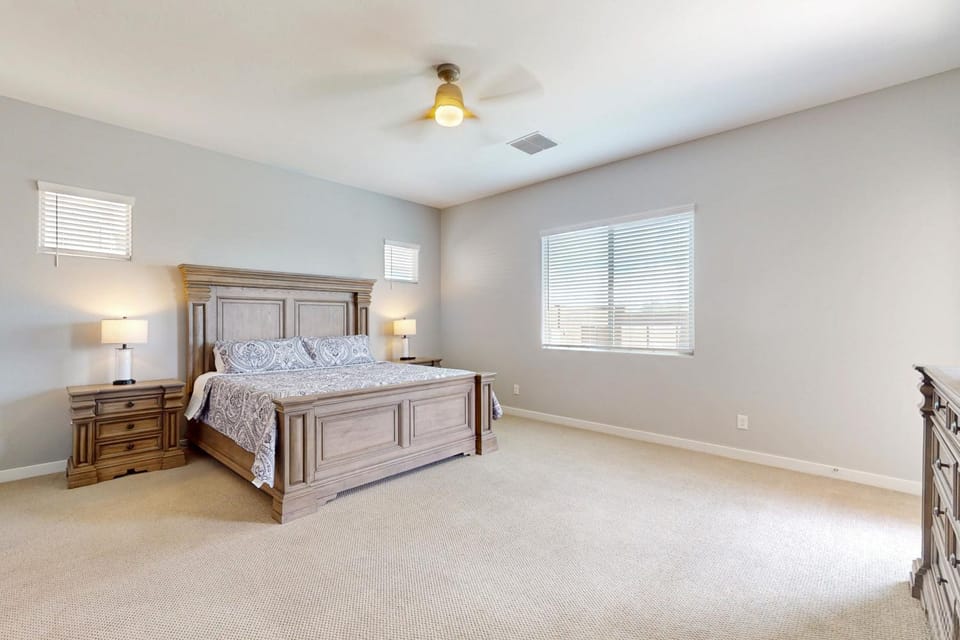 Nestled in Goodyear, this House is perfect for your next vacation. Enjoy HEATED POOL! Luxe Goodyear Oasis | King Suite | Grill's top-rated amenities, including Air conditioning, Balcony/Terrace and Dryer, and more.