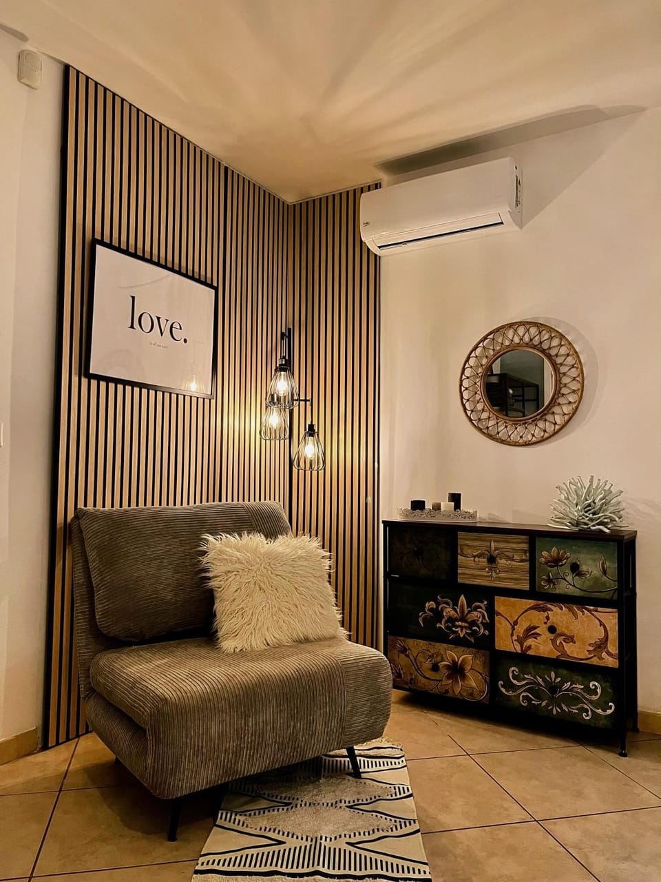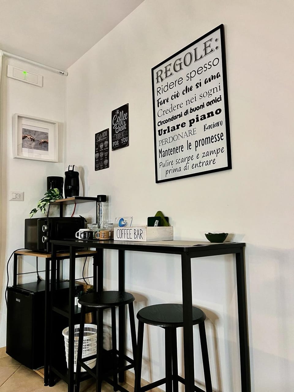 La persiana esterna non si poteva chiudere a chiave, la giustificazione è stata che si era rotta di recente. L'antenna del televisore non funzionava, la proprietaria non è riuscita a risolvere il problema. C'erano delle cialde a disposizione per la macchinetta del caffè ma neanche una bustina di zucchero.... Stanza piuttosto rumorosa dato che è un piano terra su una strada abbastanza trafficata. La stanza è poco illuminata