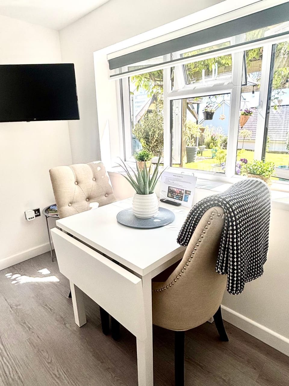 We chose the Garden Room as it had exceptional reviews and a good location. When we arrived we weren't disappointed, we were greeted with coffee milk and biscuits..a lovely touch. The local supermarket is very close and its walking distance to the pubš We enjoyed revisiting places that I'd been to as a child, Cockington especially which is a beautiful quaint village which remains unspoilt. The nearby seaside towns are all worth a visit, and chose on our last date to do the 'round robin' trip, recommended by the owners...it was a lovely day out.
