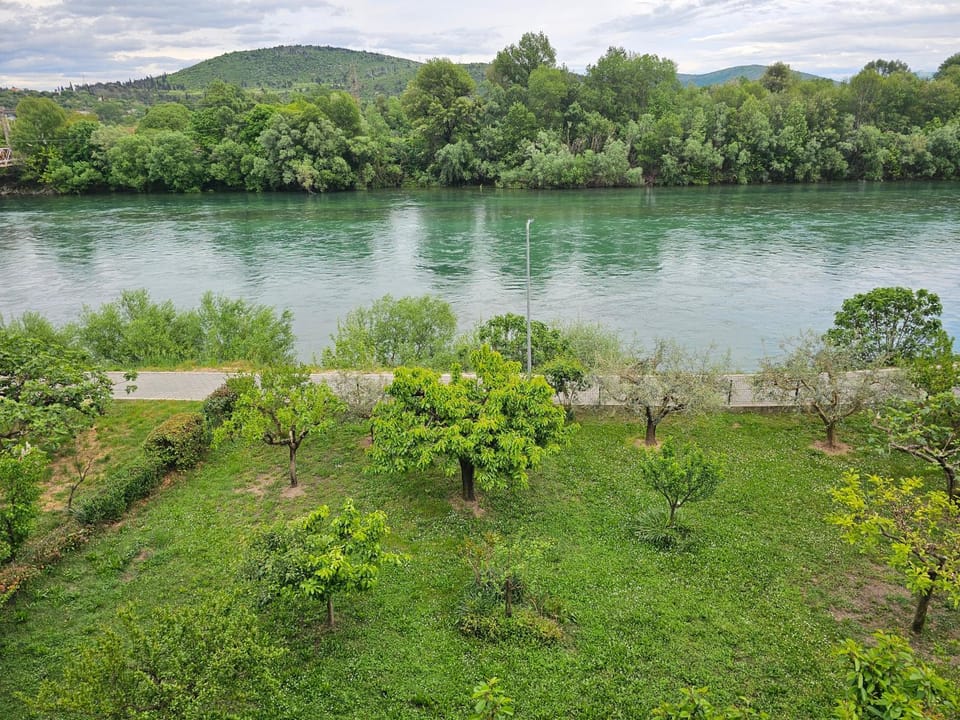 . Inace je grad Capljina jedan prekrasan grad, a nas gazda ima prekrasnu kuću, ispred koje se nalazi uređena šetnica, uz koju tece Neretva i puno ljudi tu navecer seta i vjezba. U vrtu kuće se može sjediti i tu je posadeno prekrasno cvijeće. Takoder se tu nalaze kafici i restoran.