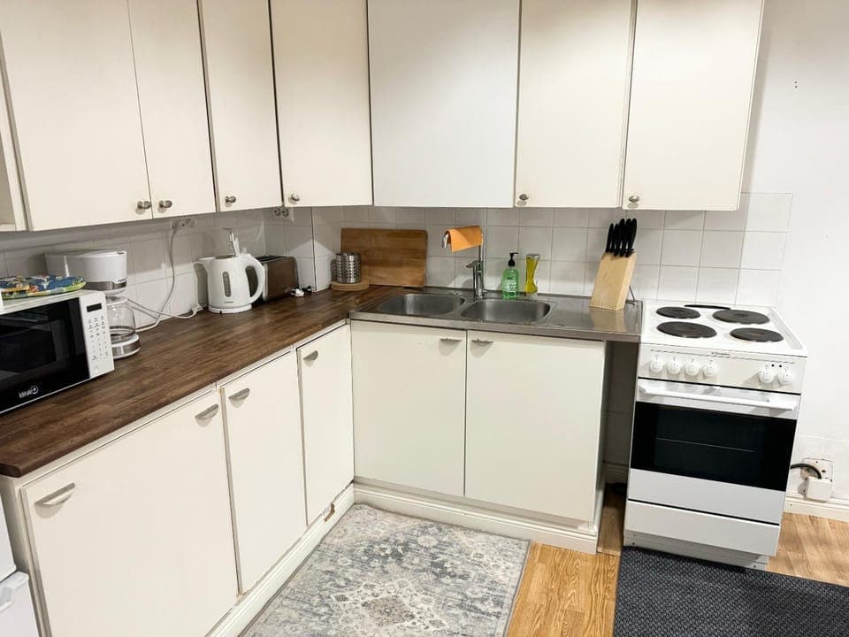 Kitchen is very well equipped, bathroom has washing machine and hairdryer.