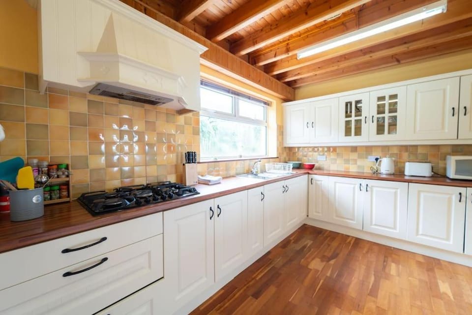 An extremely spacy house with amazing views of ocean, pastures and hills of Dingle. In a group of four we used only ground floor - 3 bedrooms, 3 bathrooms, big kitchen, dining room and connected living room with amazing views through glass doors (another 2 bedroom in the upper floor - the house would comfortably accomodate 11 person). We appreciated the detailed instruction for heating boiler, which warmed the house very fast and allowed us to dry our clothes after experiencing the typical atlantic weather :-)