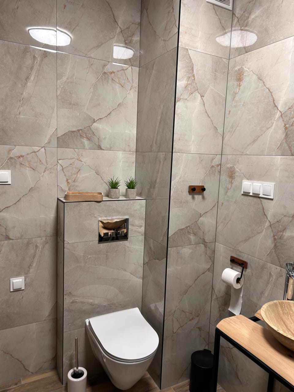 Brudne wszystkie czarne elementy, ślady po poprzednich lokatorach. Ramy okienne również pozostawiają dużo do myślenia. Jedno lustro w łazience na cały apartament to zbyt mało. W przedpokoju mogłoby być.