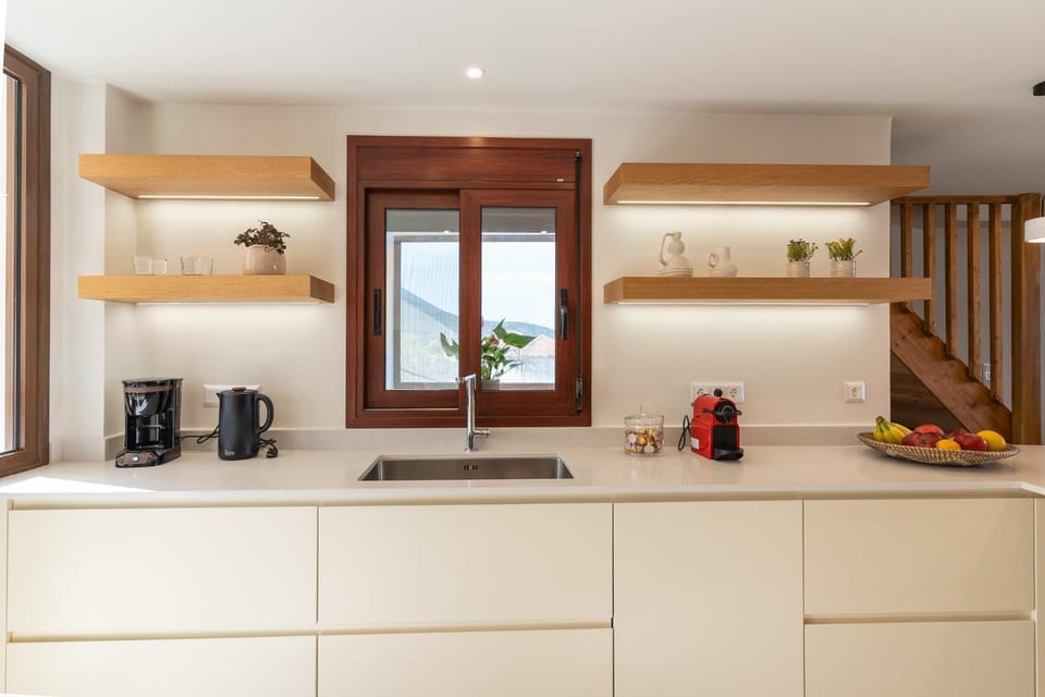 This was one of the best properties we have ever stayed in. It was immaculately clean, had the most spectacular views and the hosts were so welcoming and generous, they went above and beyond in every way. The fridge and pantry were stocked better than anywhere we have ever stayed. The home has been beautifully renovated and was spacious and comfortable for our family of 5. We were there in the heat of summer and the air conditioning was very effective. It is up the top of the hill above the town which is a hot and steep walk in summer but worth it for the views. We love Pilos and would not stay anywhere else when we return.