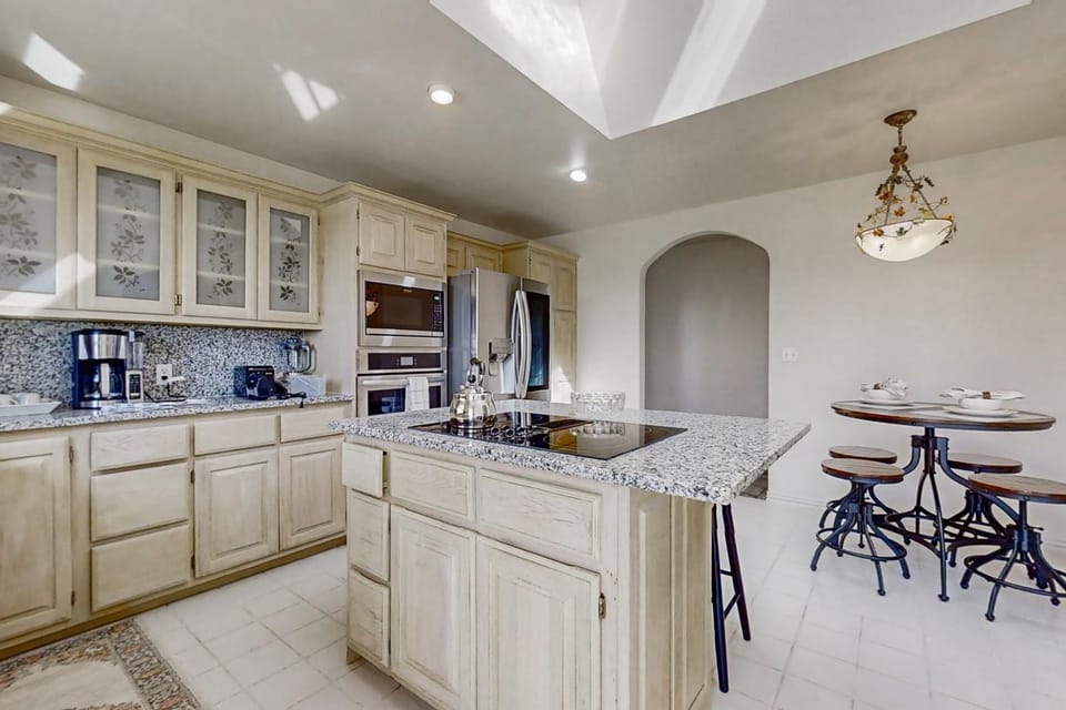 More than enough room in the kitchen to prepare meals and all utensils provided. Numerous bathrooms which is always a bonus when traveling with 10+. Beds were super comfortable as well.