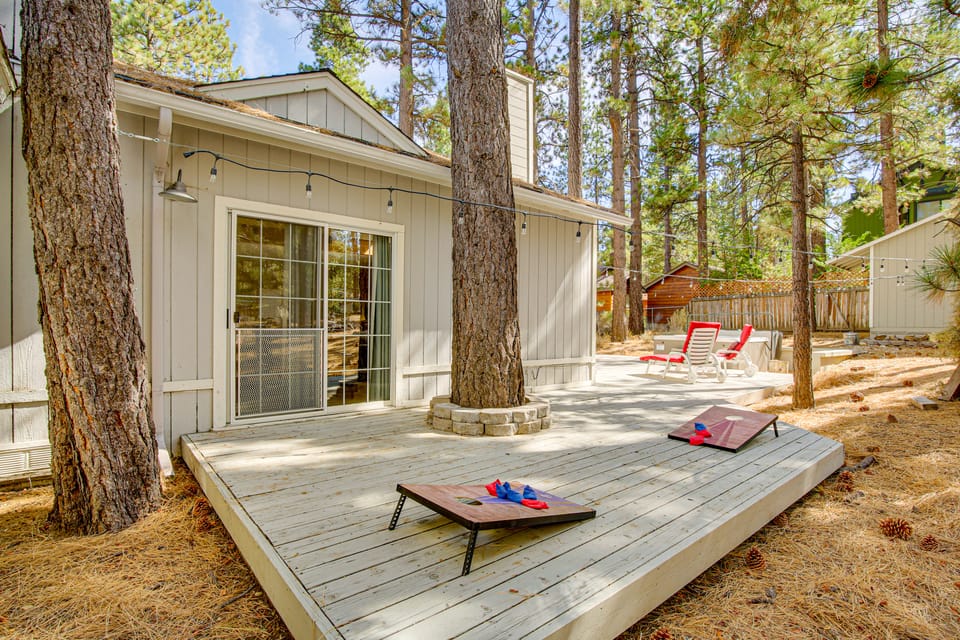 Yearning for an exhilarating mountain escape? Look no further than this spacious Big Bear vacation rental! Equipped with a gas grill and fire pit for barbecues and cozy evenings, this 4-bedroom, 3-bath home makes it easy to enjoy the area's natural beauty in all seasons. Venture out to shred the slopes at Snow Summit or take a lakeside stroll at Ski Beach Park. Afterward, play cornhole or pool with your crew!
